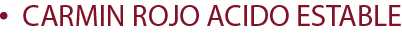 Producto de la mezcla de ácido carmínico puro con amoniaco, es uno de los más importantes colorantes de color rojo estable en la industria alimentaria con un rango de PH 2 - 7, se utiliza principalmente en bebidas y preparados de frutas. Es resistente al calcio